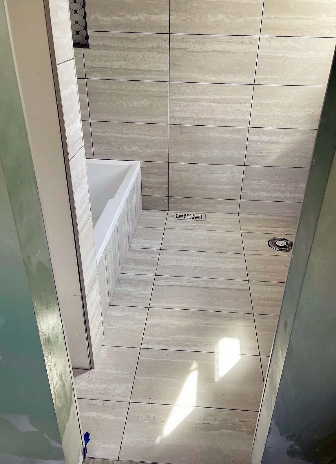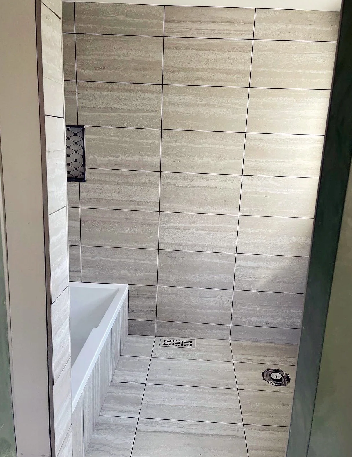 All around bathroom with mosaic niche